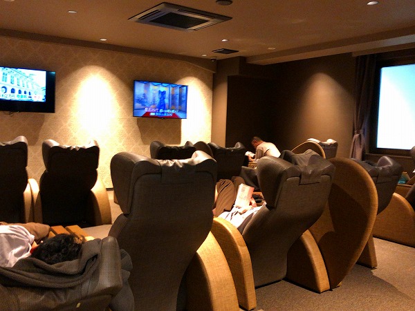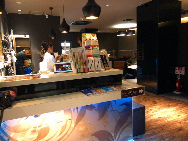 カプセルホテルのフロントは狭いのが普通だけど、「おもてなしのお宿」のフロントは広々とした空間なので、
