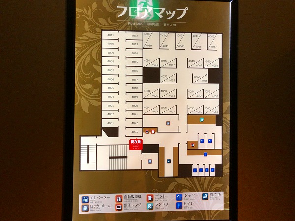 マップ左側はネットカフェみたいな部屋ばかり、右側がカプセルホテルなんだね!