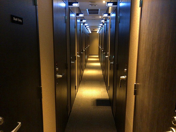 さて、やっとのことでチェックイン完了。エレベーターでカプセルルームへ!