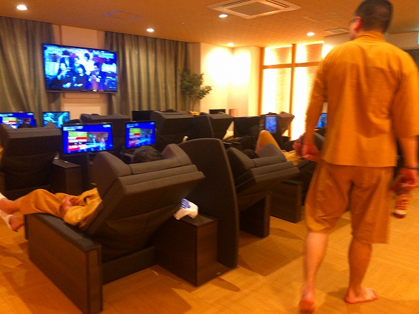 地下に温泉があって2Fが漫画や、食堂ですね。3Fから上が宿泊ルームってことですね。