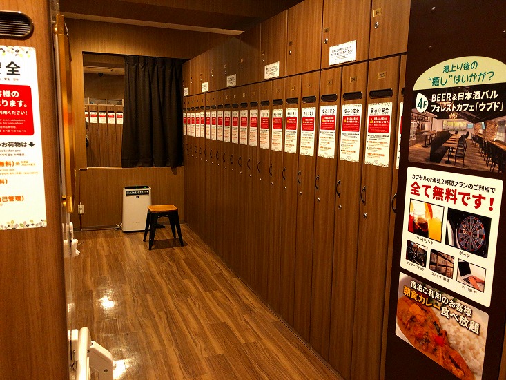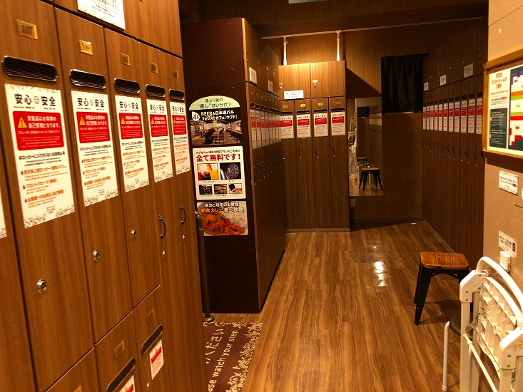 ロッカールームが広いのは、カプセルホテルでは超重要なポイントです