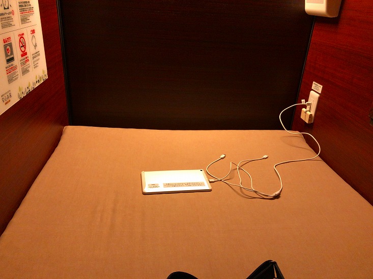 安心お宿の寝室を紹介。カプセルホテルでシモンズのマットレスだって!!