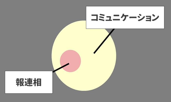 コミュニケーションの範囲は凄く大きいです。報告、連絡、相談はコミュニケーションの一部を切り出したもの、