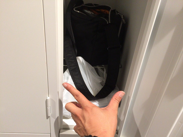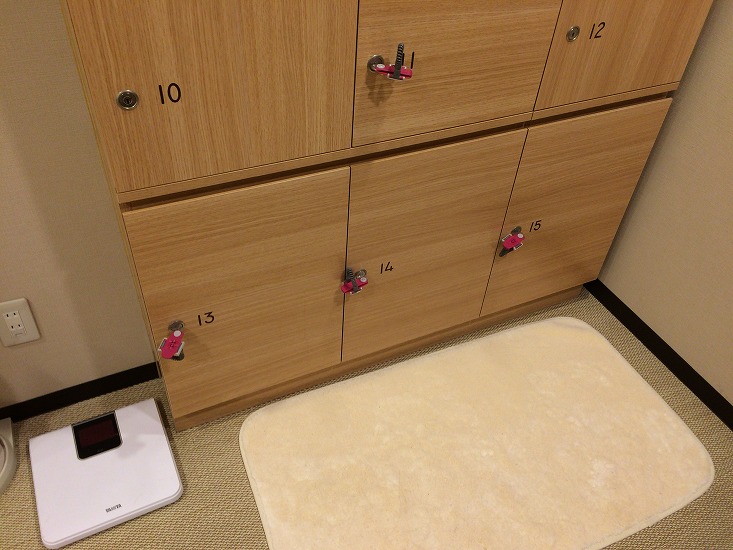 ロッカーの幅が狭いので大きい荷物はフロントに預けます