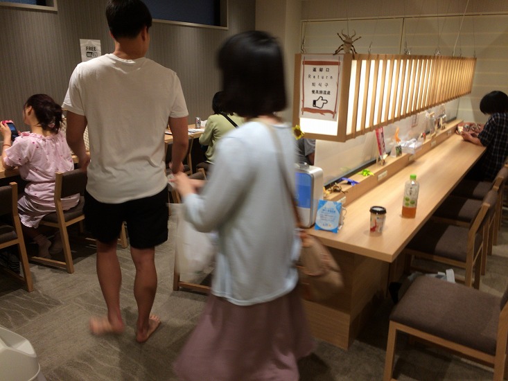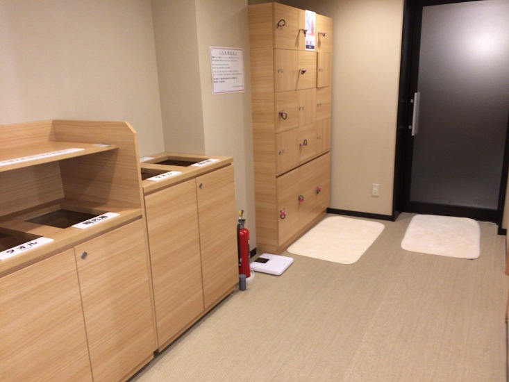 入ると直ぐに靴をぬいでロッカーにいれます。