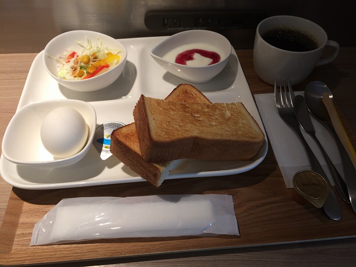 ぐっすり寝て、お楽しみの朝ご飯だ。
