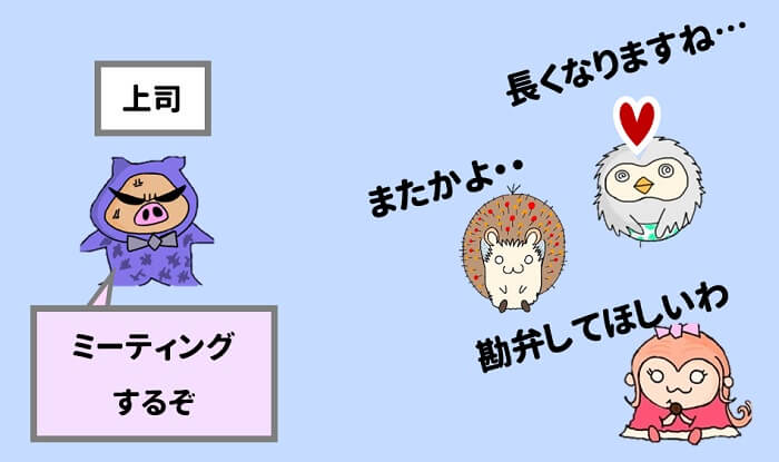 部下は内心、ミーティングに必要性を感じていません。上司がミーティングするから嫌々参加しているだけです。