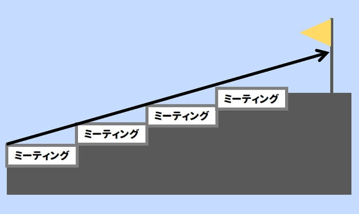 ミーティングを重ねることで、レベルが上がり、前に進んでいく、そして達成する。これがミーティングの目的です。