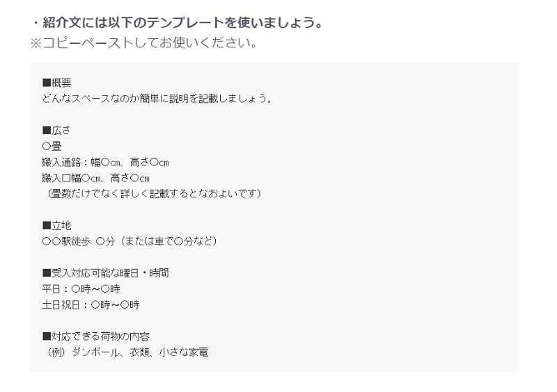 スペースを借りる前は、プロフィールを読んだりメッセージを送ることができるので、やり取りの中で決めてください。