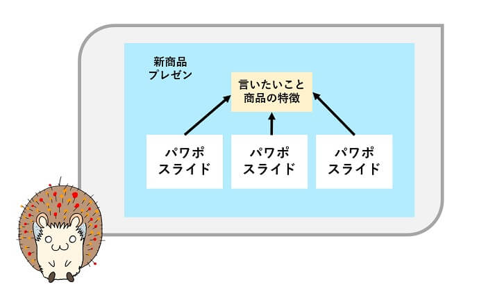 プレゼンのコツは→パワポ資料すべてに「何が言いたい」を適用させる構成