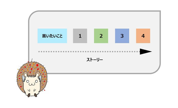 結論(言いたいこと)をすべてに展開します。言いたいことに軸足をおきながら進めていく感じです。