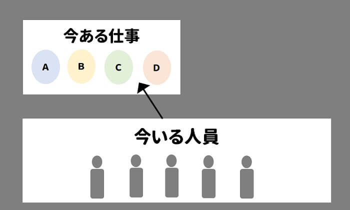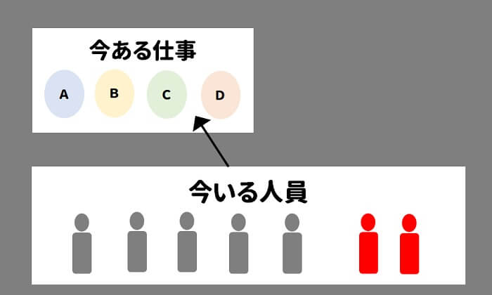 基本的に今ある仕事は増えることがありません。増えることがない仕事を人員で割って仕事をすることになるので、