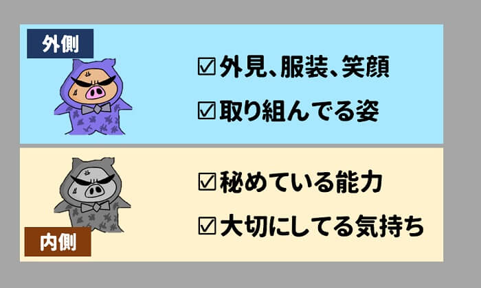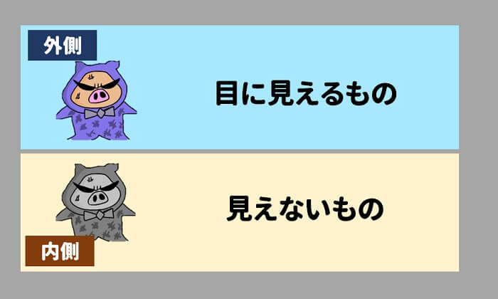 こんな風に人は目に見える外側と、目には見えない内側にわかれます。