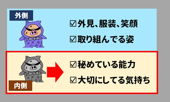 褒めるレベルを深めるには、その人の内側に焦点を当てること、相手を理解しようと思う気持ちです