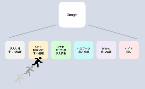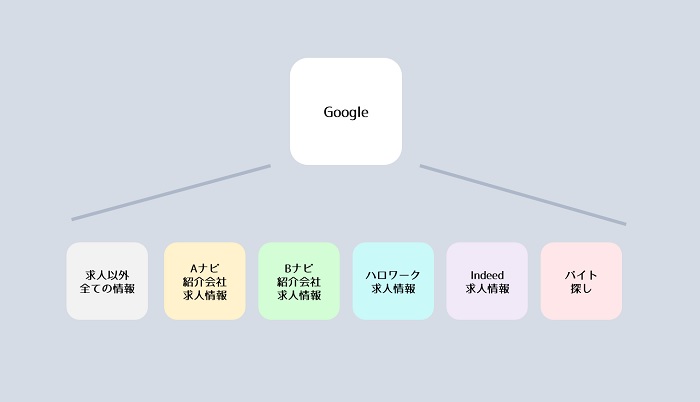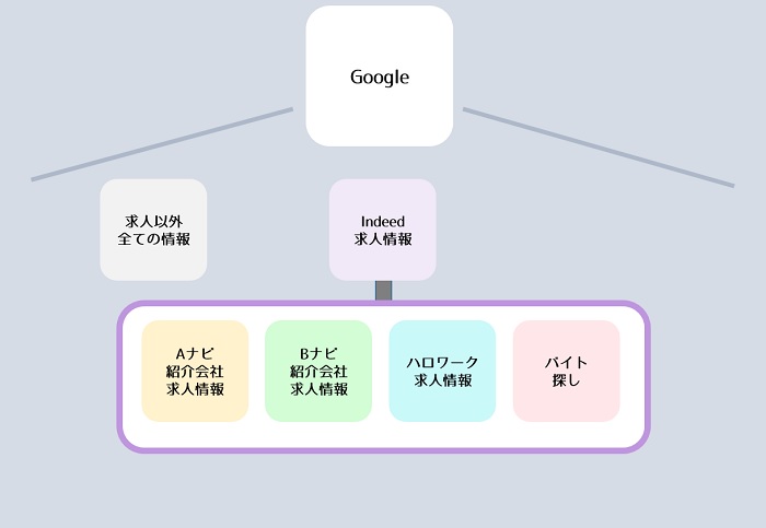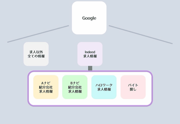 Googleは情報検索エンジンですが、インディードは求人に特化した検索エンジンです。