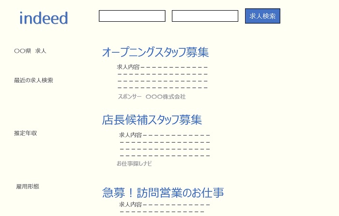 インディードに訪問したら、こんな感じで求人情報が並んでいます。