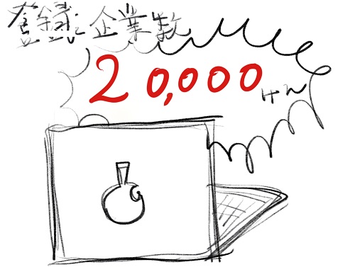 このナビの登録企業数は20,000件。企業数が20,000件だよ。そこから営業職、事務職、技術職の「求人数」になおしてみたら、
