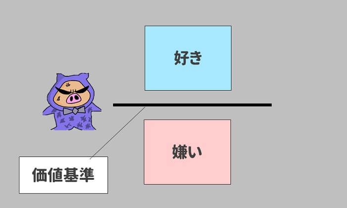 • 価値観をベースに好き嫌い、正しい正しくないを決めない