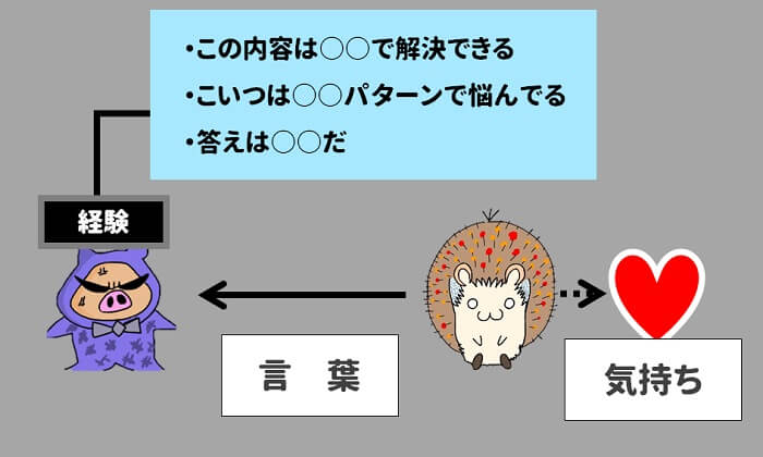 解決することに意識が向かっていて、相手の言葉の裏側にある気持ちに意識が向かわなくなっていますね。