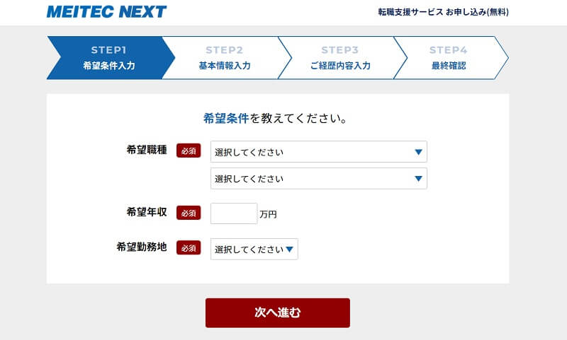 出典:メイテックネクスト公式サイトの登録ページをスクショ
