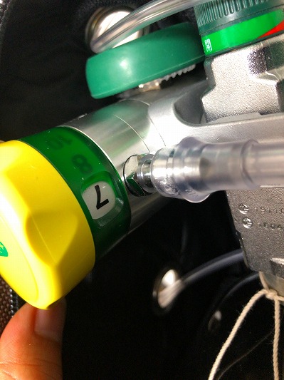 携帯用の酸素ボンベも同様に「7」の流量で行う。