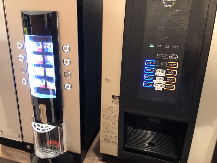 受付前にはフリードリンクコーナーと、カップヌードル無料があります