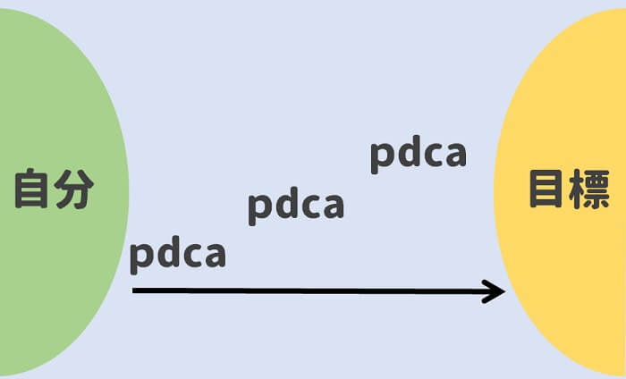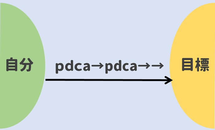 pdcaのサイクルを回し続けて、目標を達成するってことです。