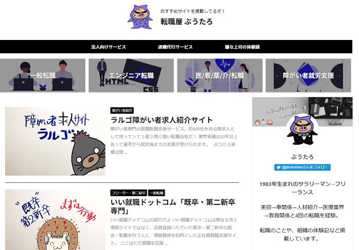 もう一つ立ち上げたブログ『転職屋 ぶうたろ』です。
