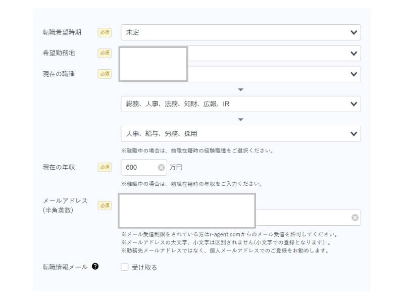 出典:リクルートエージェント公式サイト登録ページをスクショして編集