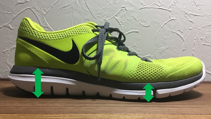 ちなみに世に出ているランニングシューズのほとんどが1:2なんです。かかとの方が高くて厚みを持たせているってことです