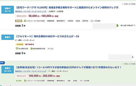 アポイントが取れたら、それに応じて収入が発生するって業務です。成果ベースの案件は単価が高いです。