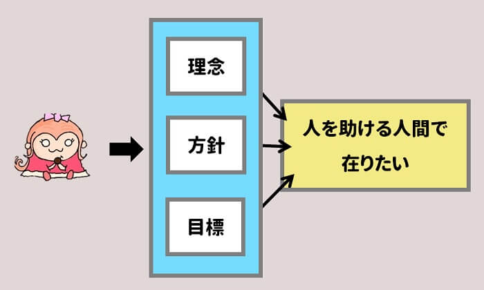 会社の経営理念や、経営方針、目標を通じて達成しようと考えるようになります。