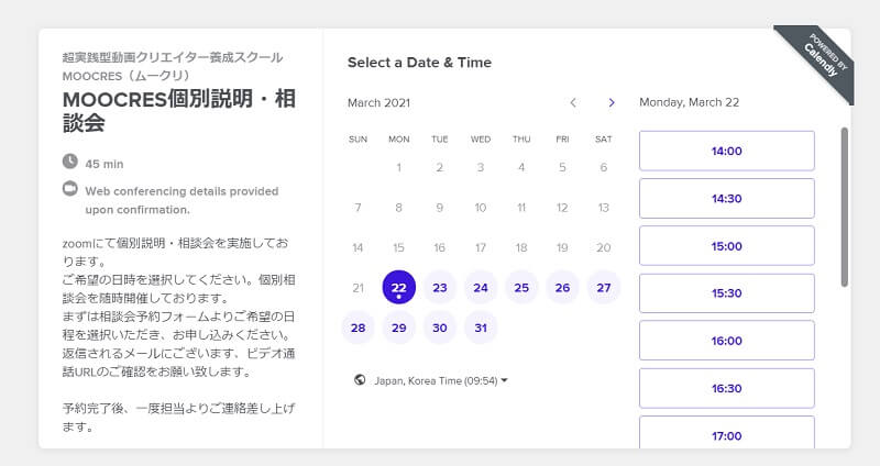 出典:MOOCRES公式サイトの相談会画面をスクショ