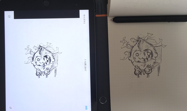 まずこのbamboo slateの上に乗っかてるノートにイラストを書いてみるよ!!