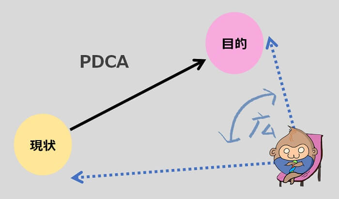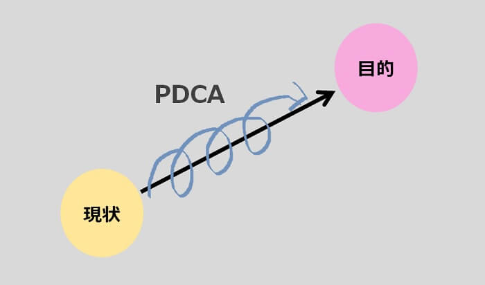 人生でも仕事でも目的に向かっています。そして途中でPDCA(計画、行動、反省、改善)を繰りかえして進みます。
